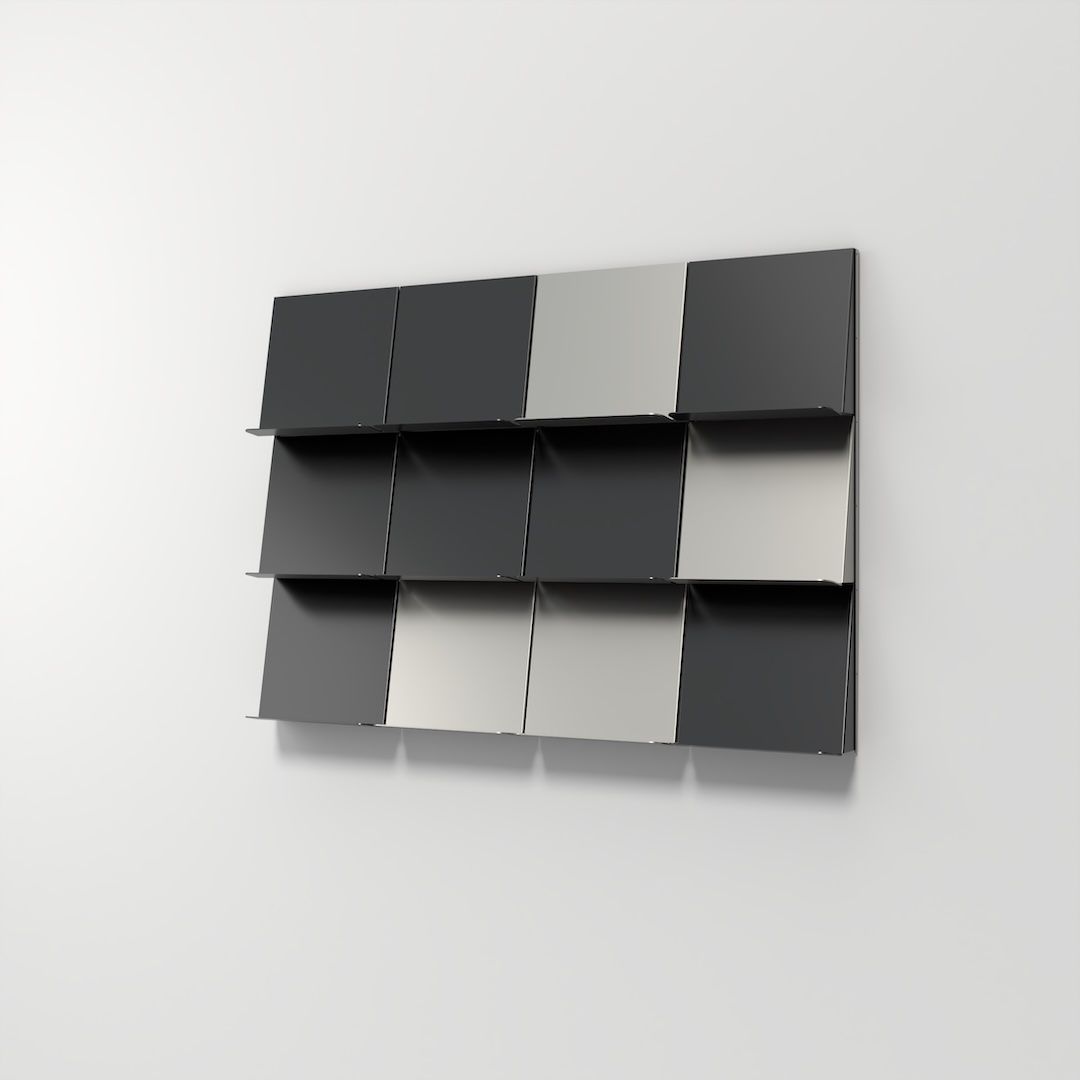 Ribalta è un sistema di arredo modulare in metallo che coniuga rigore tecnico ed estrema libertà compositiva. L’unico limite è la vostra fantasia. La sua struttura a cremagliera – fissata a parete o integrata in una base freestanding – costituisce l’ossatura su cui innestare diversi tipi di moduli in acciaio.